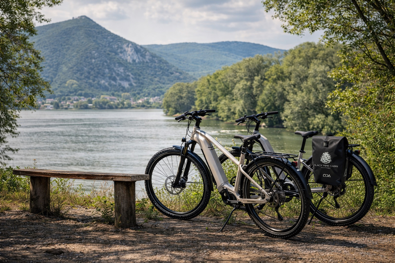 Ha a Black Pine Cabinban szállsz meg, a környék felfedezéséhez két prémium SUV e-bike-ot is kérhetsz: Hercules NOS SUV 85 Nm, 630 Wh akkumulátor (50-70 km hatótáv). A helyszín adottságaihoz (Szentendre, Boldogtanya – meredekebb emelkedők, akár 12%) kifejezetten ideális: kényelmesen le tudtok gurulni a belvárosba, a Duna-partra, vagy bejárni a Dunakanyar kedvenc útvonalait – anélkül, hogy bringát kellene szállítanotok.