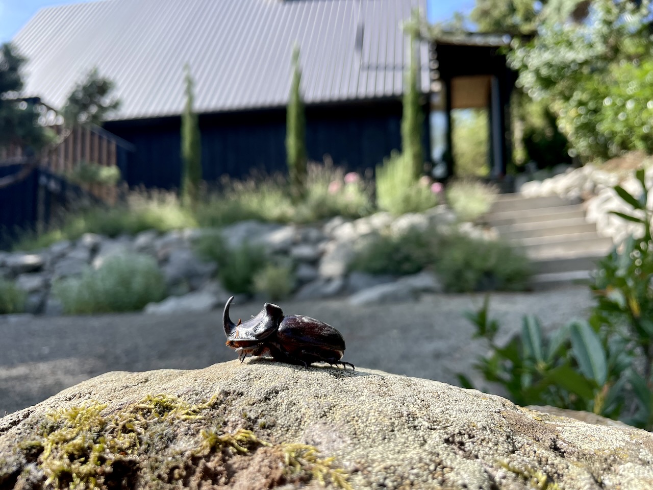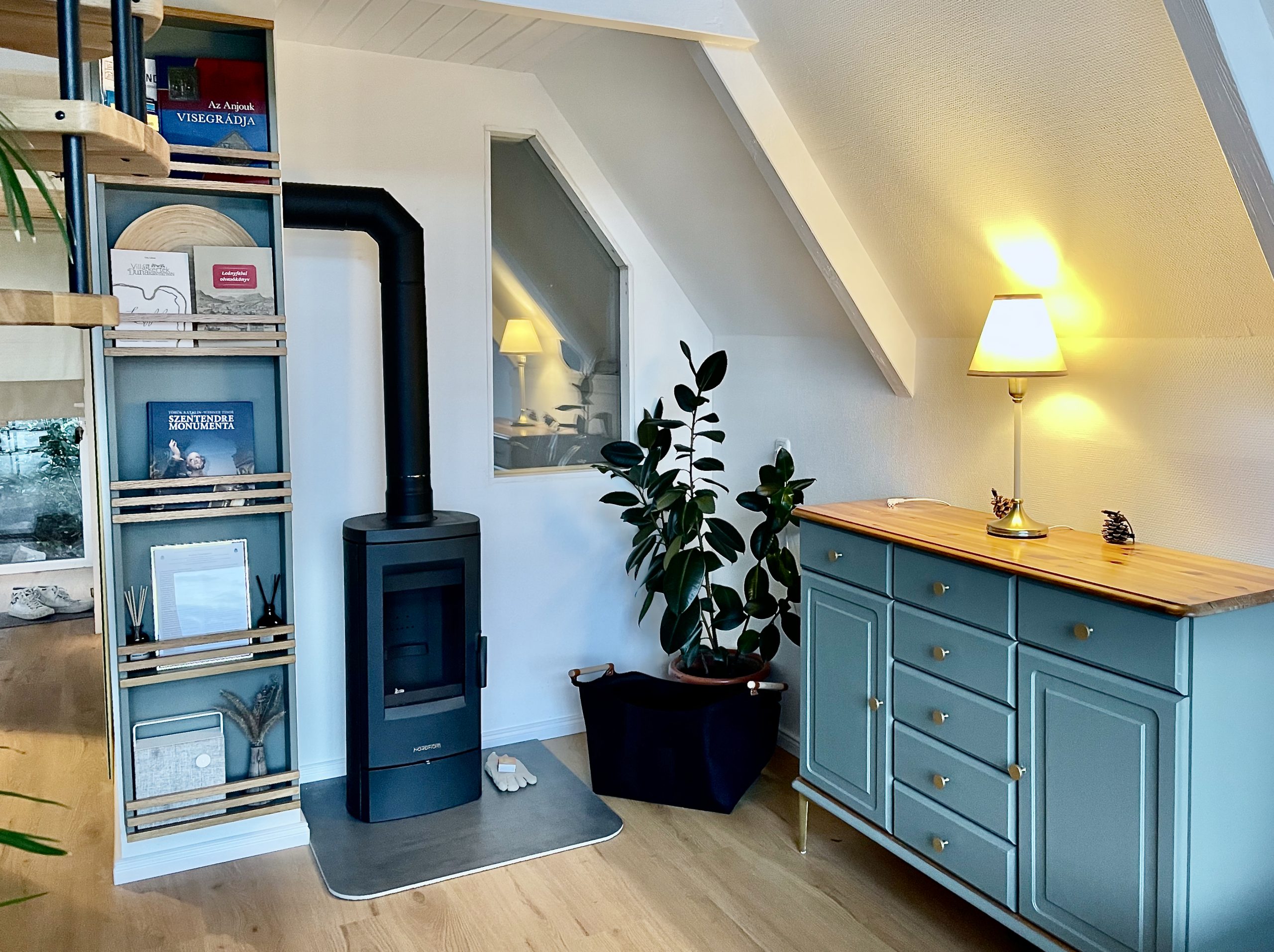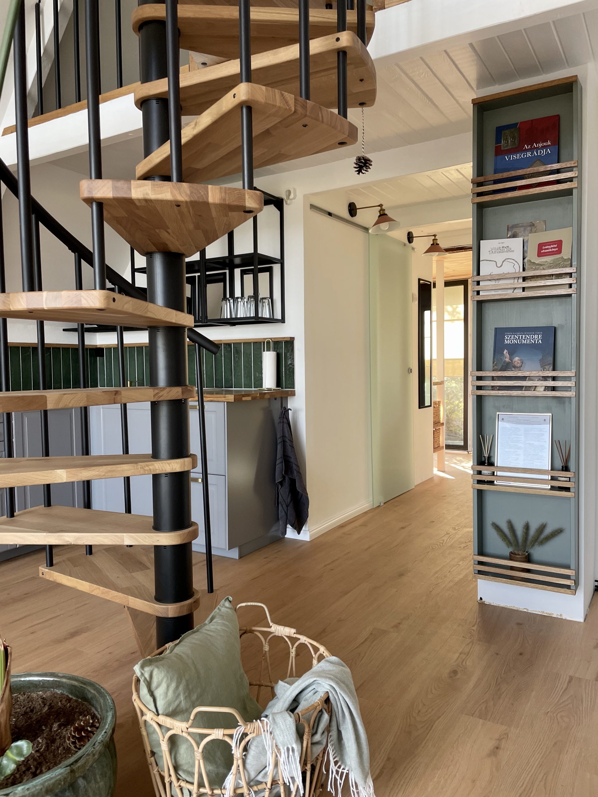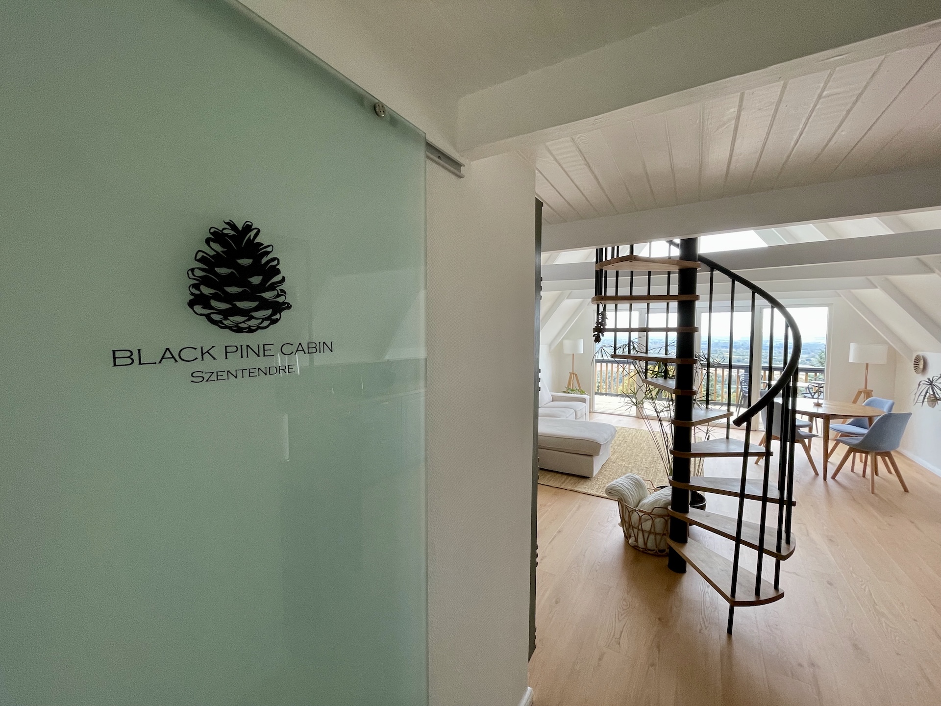 Black Pine Cabin stands on the border of Szentendre and Leányfalu, surrounded by old-growth trees in a truly close-to-nature setting. When we first imagined it, we had one simple wish: to create a place that feels good to set out from — and even better to return to at the end of the day. The cabin is named after the two towering black pines that watch over the garden, shaping the atmosphere of the whole place and filling the air with their resinous scent. The house’s raw black pine cladding is intentionally simple and timeless, so it never steals attention from what matters most: the nature all around you.By day, the area almost plans itself: walks along the Danube, wandering Szentendre’s streets, hikes in the Pilis forests, or a trip up to Visegrád. Whether you set off on foot or on two wheels, it’s easy to head out from here — and discover something different every day. And in the evening, the terrace, the view, and the cabin’s slower rhythm will be waiting for you.Wooded, open land stretches out in front of the cabin and along its sides, creating a naturally private setting. There is only one neighbouring property at the back — and even then, their presence is rarely noticeable.For us, exploration is not just about the area. We've also hidden little thoughts and inspirations in the cabin interiors and the garden - things that help you slow down, quieten down and look inwards a little. Because sometimes the most interesting paths don't lead outwards. The Black Pine Cabin is easily accessible from Budapest, yet far enough away that you can get away from it all and explore all that surrounds you at your own pace. Outside and inside.