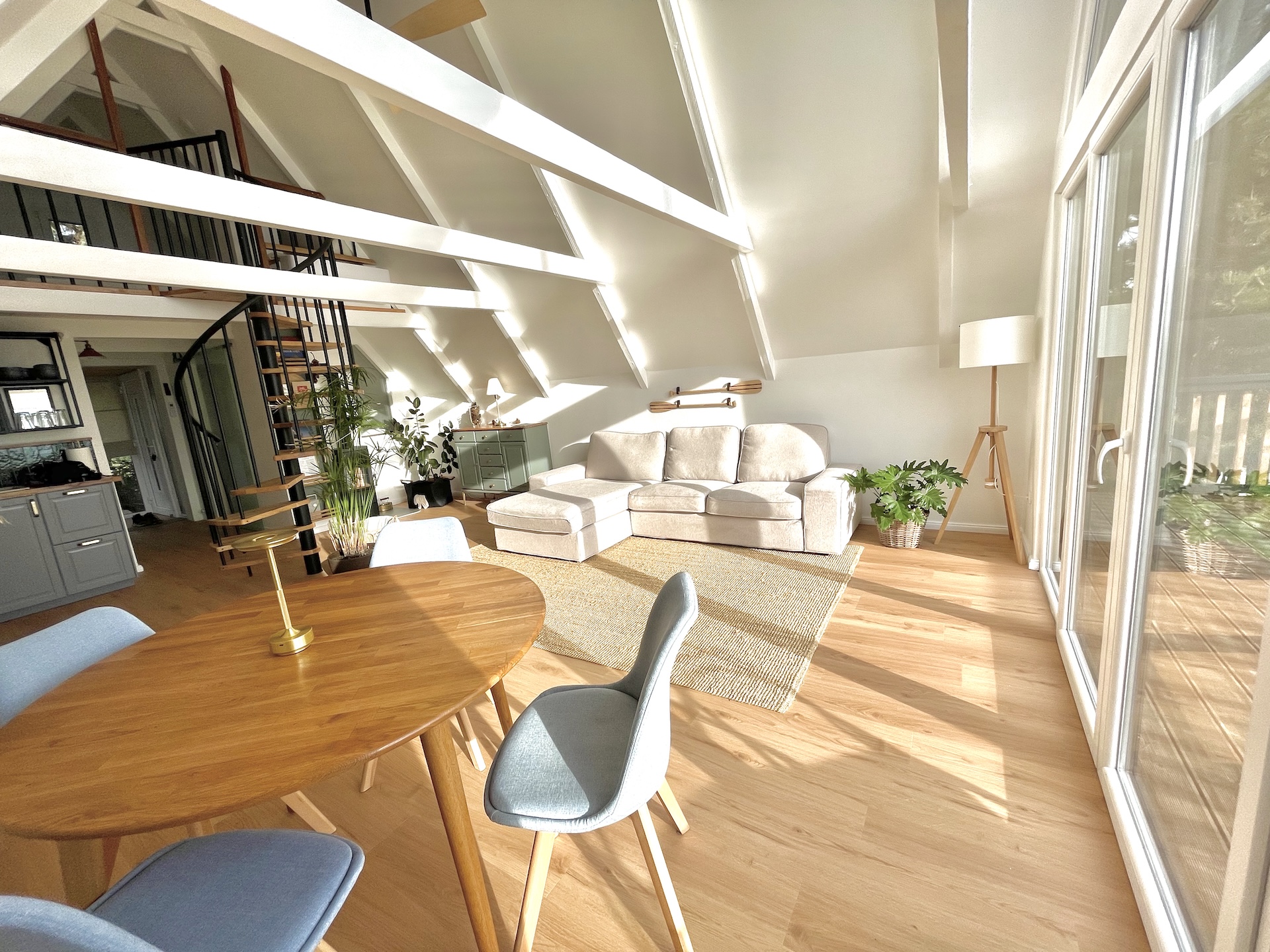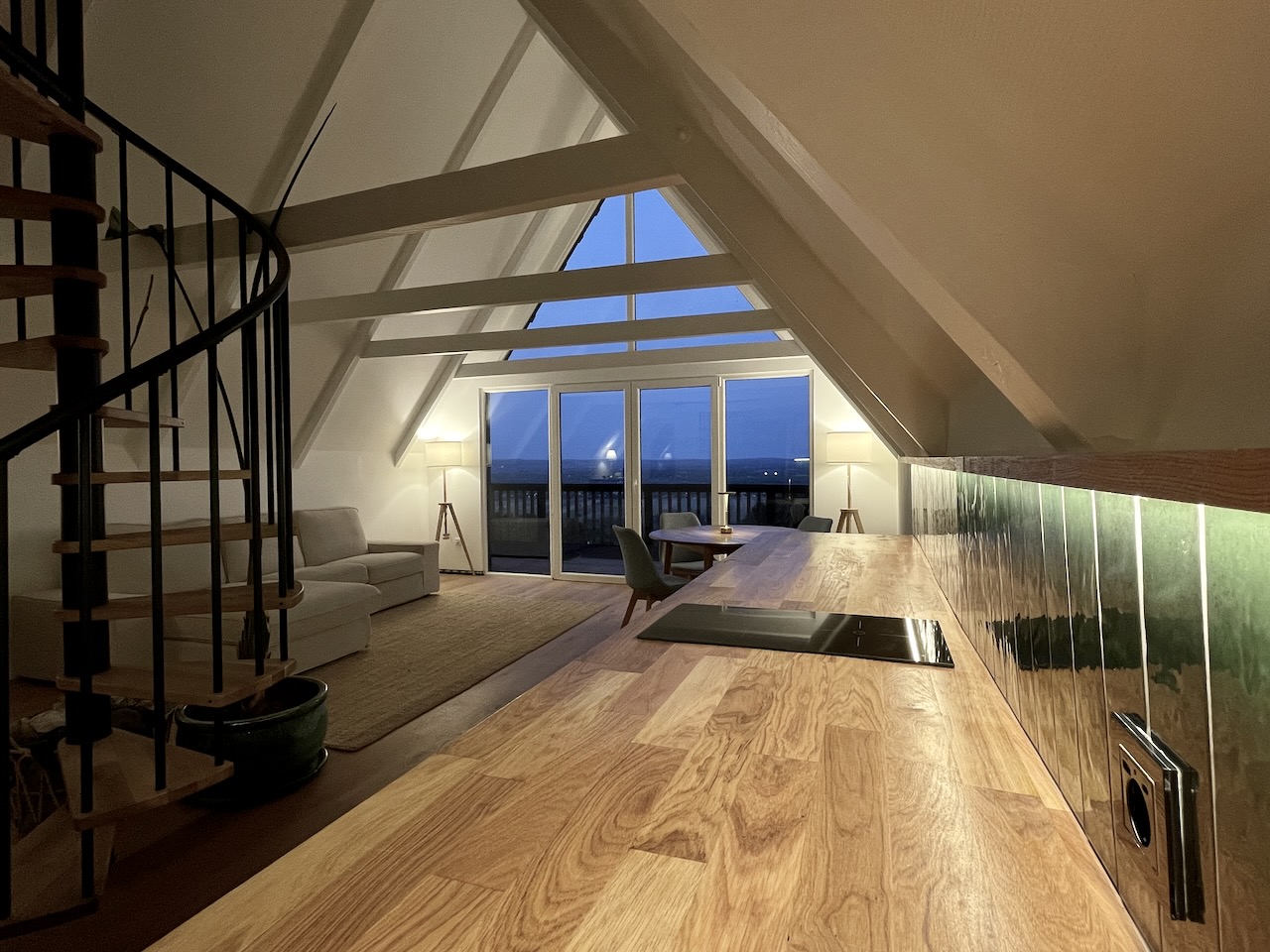 - Fully equipped kitchen: induction hob, microwave, dishwasher, Tchibo coffee machine with capsules, tea, kitchen utensils, air-fryer